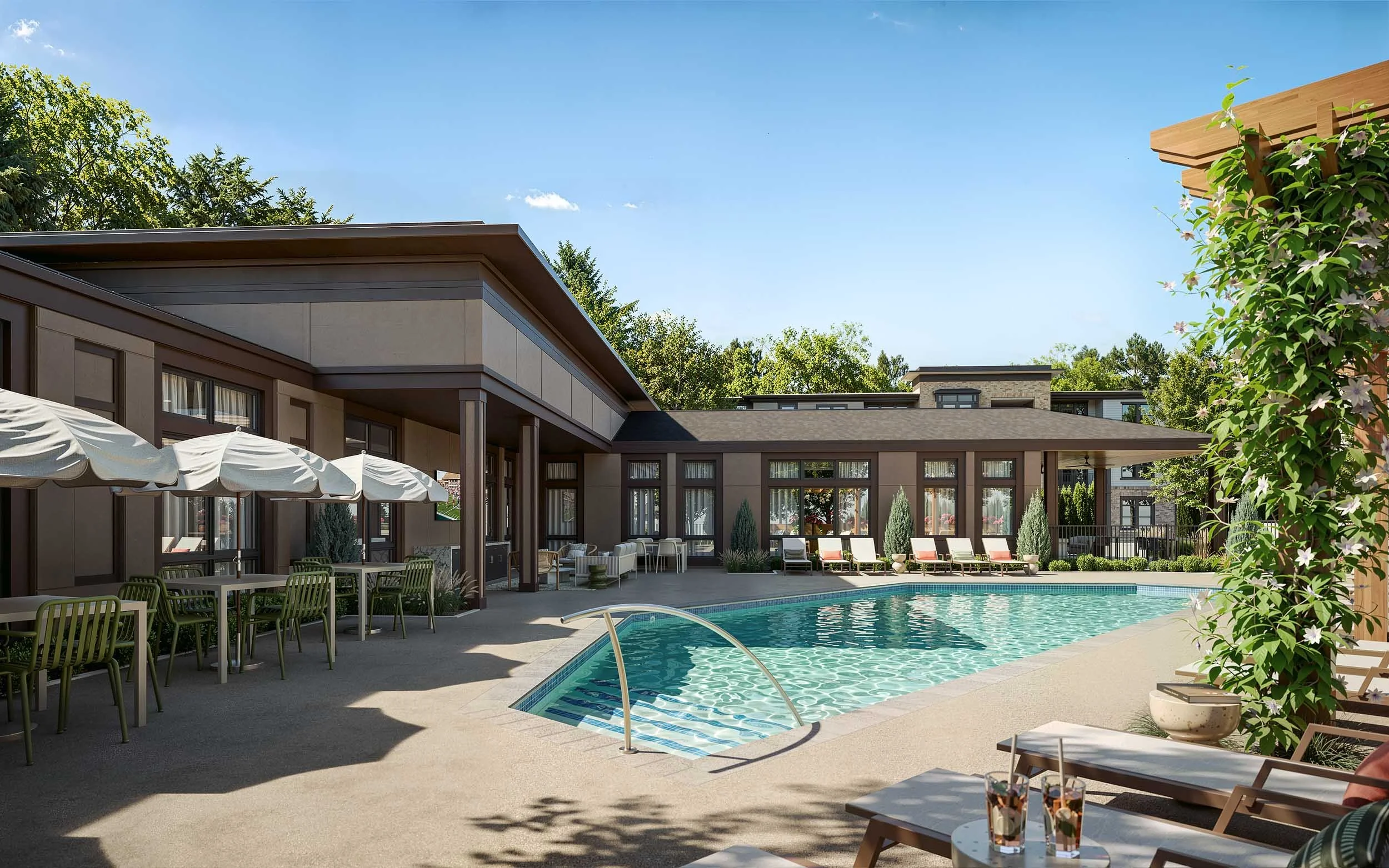 Designed with your lifestyle in mind, the community offers spaces that support both productivity and downtime, from a resident clubhouse with flexible gathering areas to a pool and outdoor lounge perfect for unwinding. A fully equipped fitness center, garage parking, and EV charging add another layer of convenience, creating a living experience that fits seamlessly into how you move through your day.